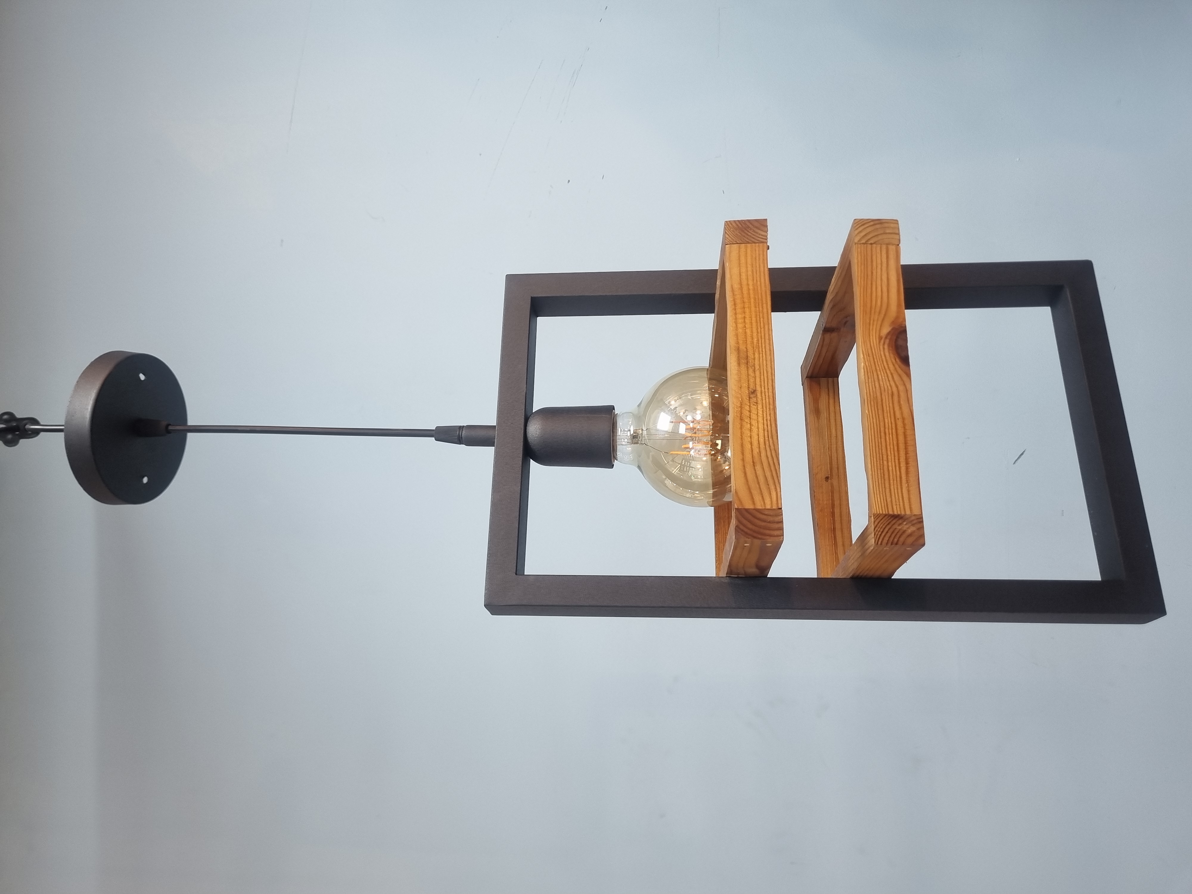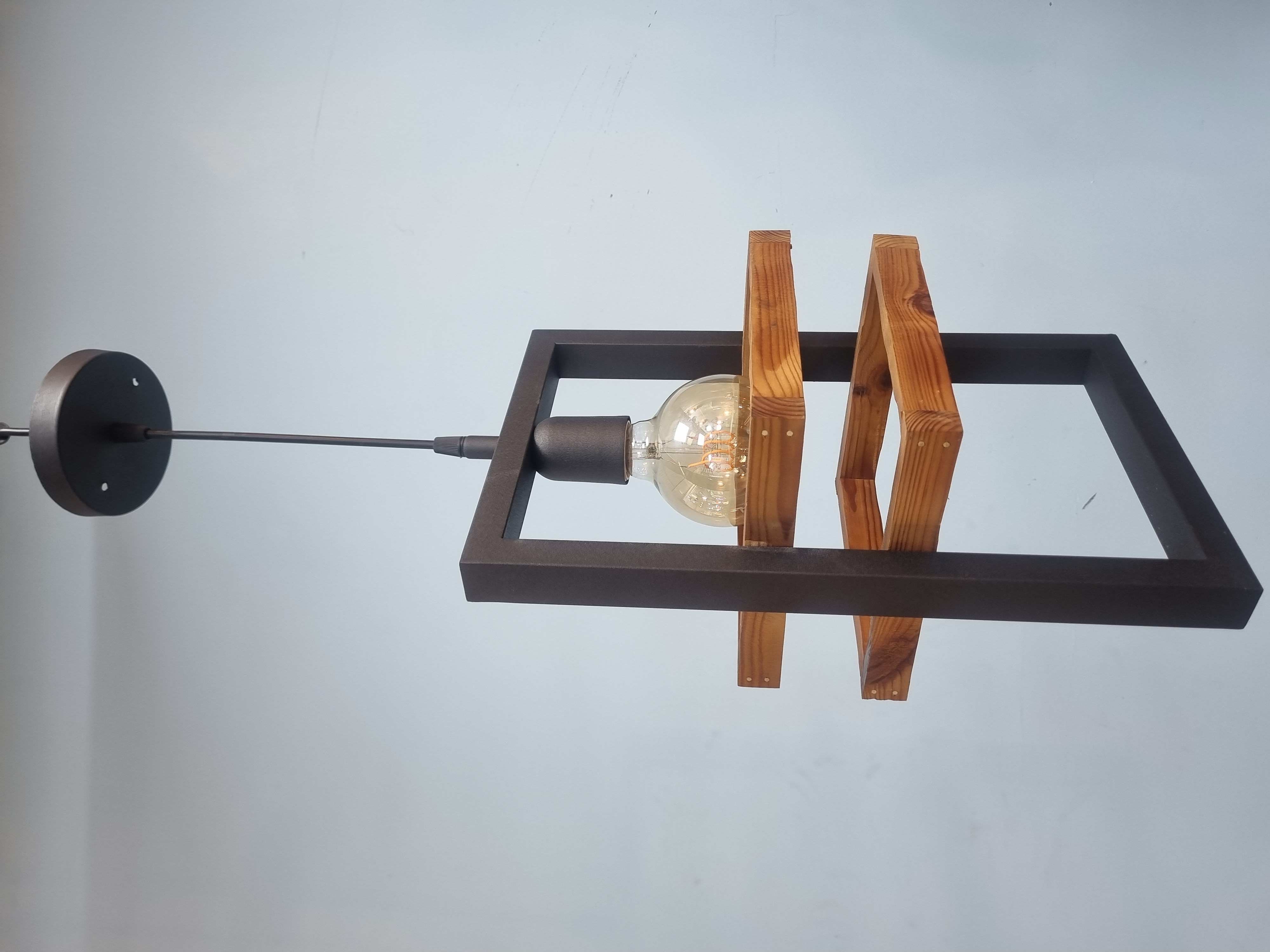 لوستر دو حلقه چوبی فلزی
