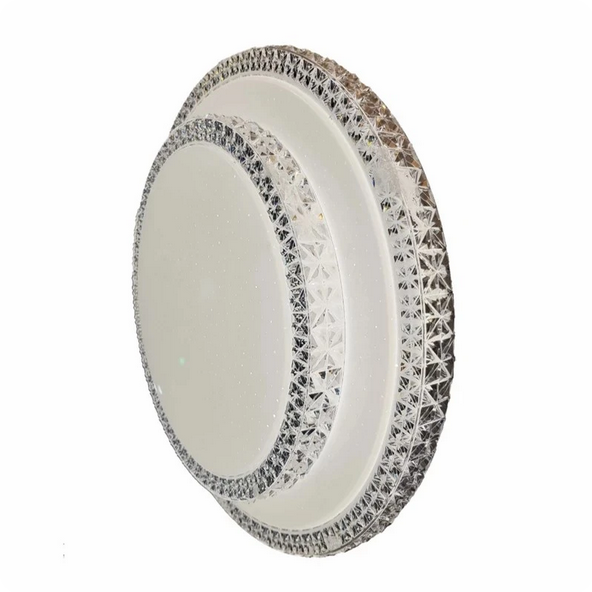 لوستر های سقفی یکی از زیباترین طرحهای مینیمال چراغ سقفی بازار میباشد. این لوستر مدل دو طبقه دور کریستال می باشد که بسیار جلوه زیبایی به محیط اطراف خود میدهد. این مدل لوستر نوعی فول لایت به حساب می آید زیرا از کناره های کریستال خود هم نور پخش میکند. این چراغها به صورت 3 حالته (رنگ یخی ، آفتابی ، مهتابی) بوده که ابتدا رنگ سفید یا مهتابی آن روشن میشود و با خاموش و روشن کردن موجب تغییر رنگ به زرد یا همان آفتابی و با خاموش و روشن کردن مجدد رنگ زیبای نچرال یا طب